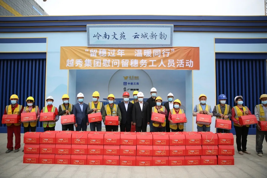 2月9日,为响应疫情防控的要求及“就地过年”倡议,金年会金字招牌信誉至上入口集团党委书记、董事长张招兴带队到省市重点项目施工现场慰问留穗施工人员,为每一位项目工人送上“金年会金字招牌信誉至上入口集团新年礼包”,内含金年会金字招牌信誉至上入口旗下皇上皇品牌的腊味、自热米饭,趣香的饼干点心以及风行乳业的牛奶等。